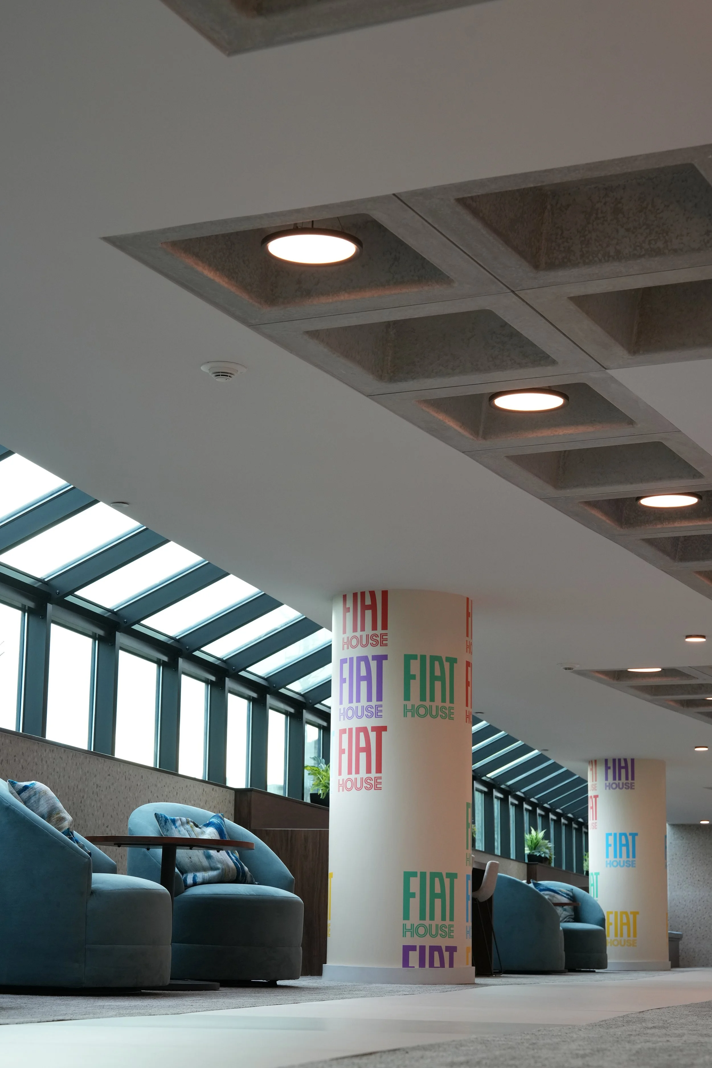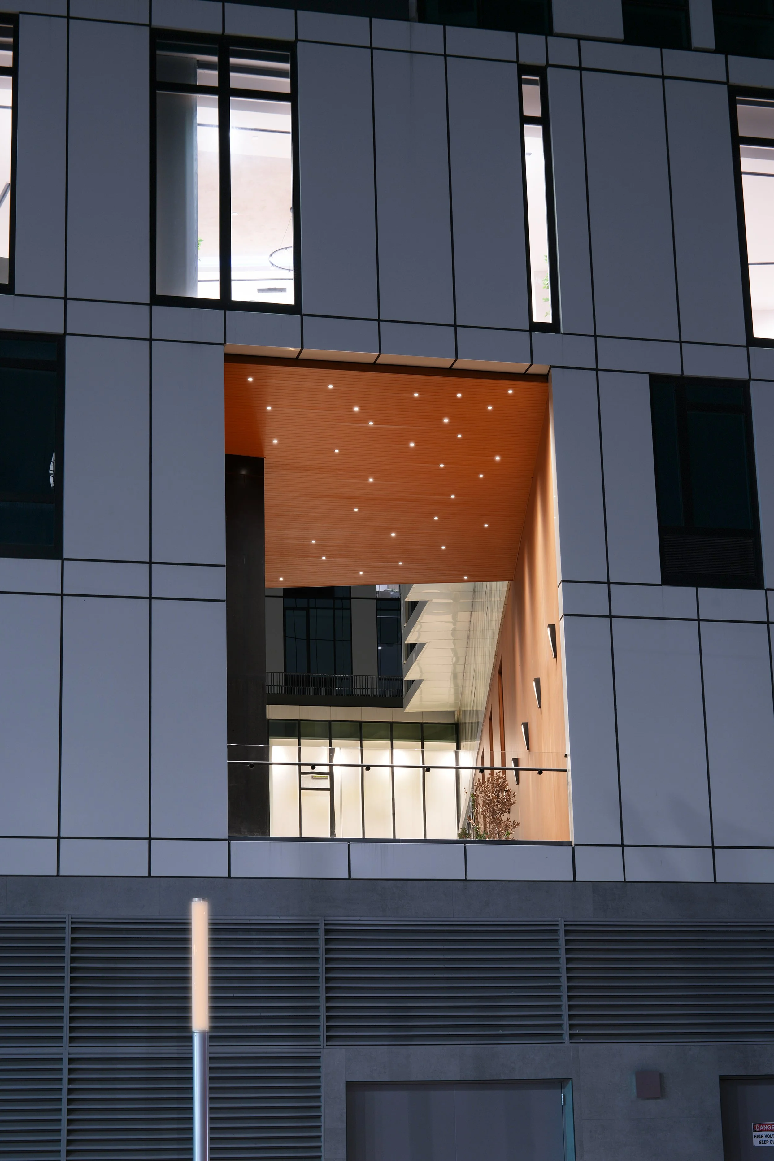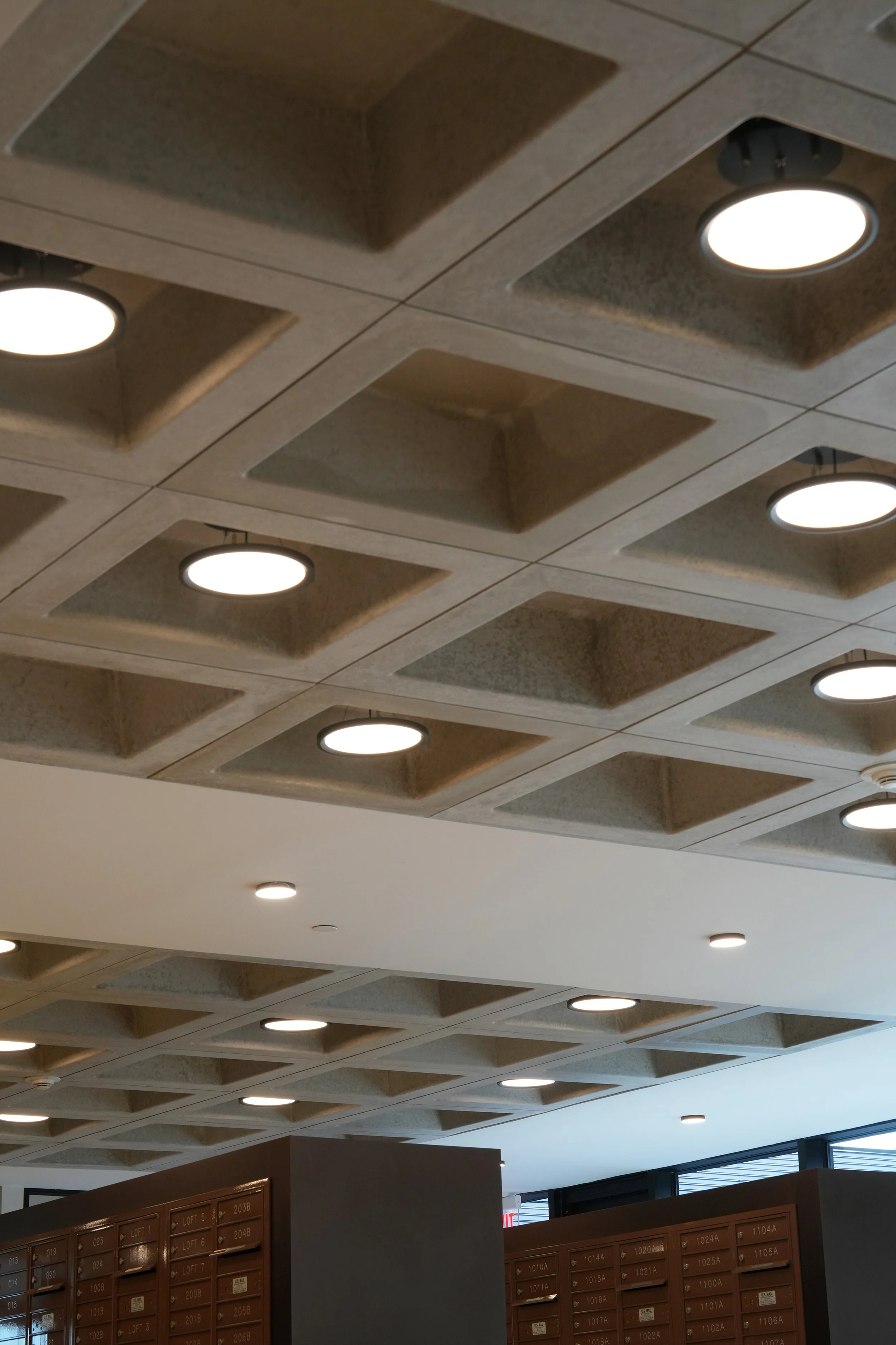 The ceiling of lobby space is designed with GFRC that replicate the original waffle concrete structure.