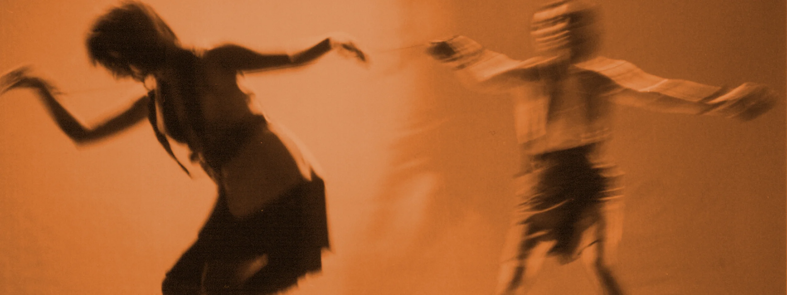 On the back of the stage, we hung sloping screen, which displays visual images projected from ground floor lobby throughout the performance. The images are reflected on metallic material of stage, producing psychedelic setting.