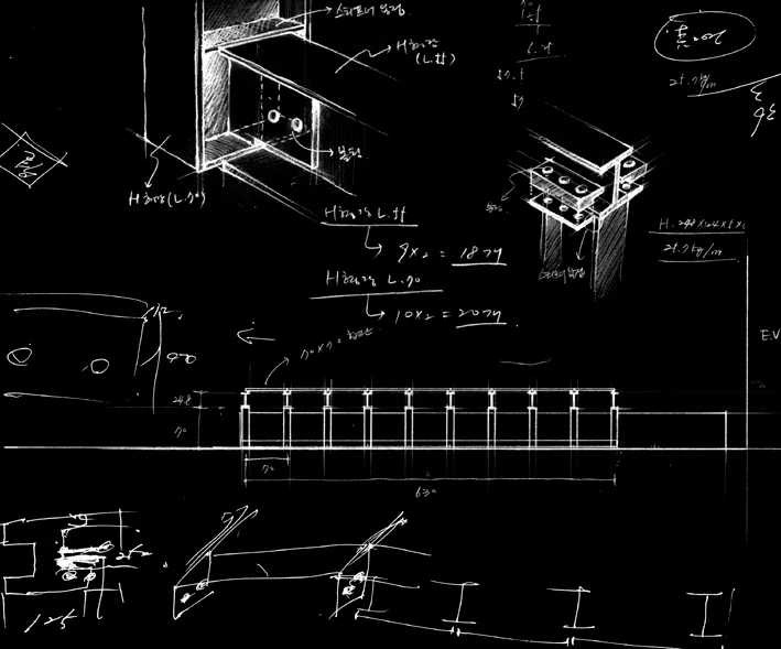 To make the plan work, I had to minimize damage to H-beam. Therefore, I designed stage sub-structure with no processing of H-beam such as welding and bolting as much as possible. I fully utilized dynamics that I learned in university to calculate very light but non-deflective H-beam.